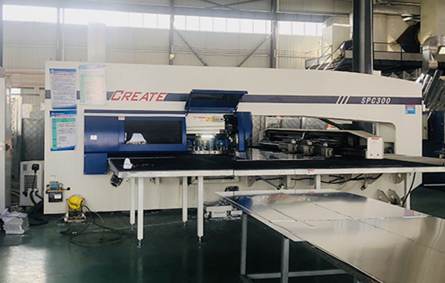 擁有現(xiàn)代化的生產(chǎn)廠房,配套完善,多工位數(shù)控沖床、6臺轉(zhuǎn)塔沖、4臺全自動激光雕刻機(jī),全長480米的自動靜電噴涂生產(chǎn)線1條